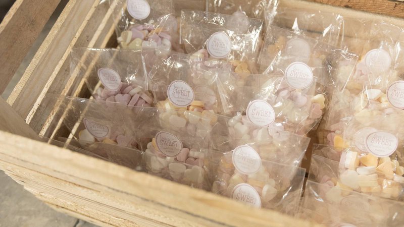 Gastenboek & wedding favor in één Iedereen kreeg een goodie bag, met gepersonaliseerde spulletjes met onze namen en een quote op. Een doosje muntjes, een flesje water, een potloodje,… En er zat een kaartje in waarop de gasten een boodschap voor ons konden neerpennen. Dat was onmiddellijk ook het gastenboek.