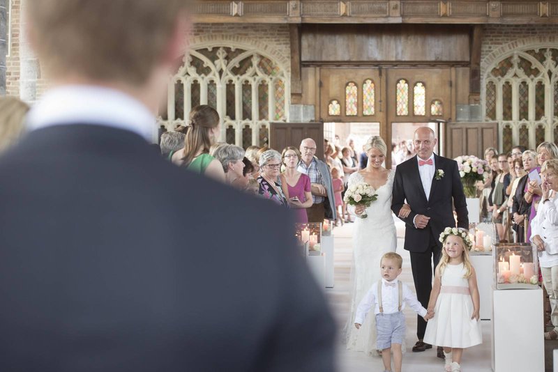 “Omdat we uiteindelijk beslisten om voor een groot klassiek trouwfeest te gaan, met de kerk, de receptie en een avonddiner met dansfeest, maar we ook het intieme en familiale in ons huwelijk wilden brengen”, gaat Benedicte verder, “kozen we ervoor om twee dagen voor de kerkelijke trouw, de burgerlijke trouw te plannen. Dat werd een dag met enkel onze gezinnen en dichtste vrienden. We trouwden voor de wet en hebben dit heel gezelllig met lekker eten en drinken thuis gevierd.”