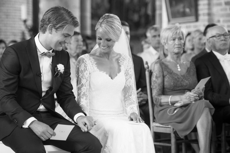 “Al gauw kwamen twee punten naar voor, waar we toch even voor gingen zitten en goed wilden over nadenken. Zo is Sam’s familie erg gelovig, en zij vonden een kerkelijk huwelijk belangrijk. Dat was minder het geval voor mijn familie. Trouwen voor de kerk was niet zo’n must, maar omdat we merkten dat het doorgeven van die waarden voor Sam’s gezin zo veel betekende, hebben we samen beslist om voor de kerk te trouwen.”