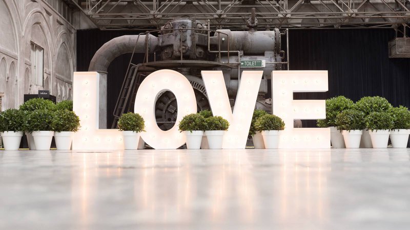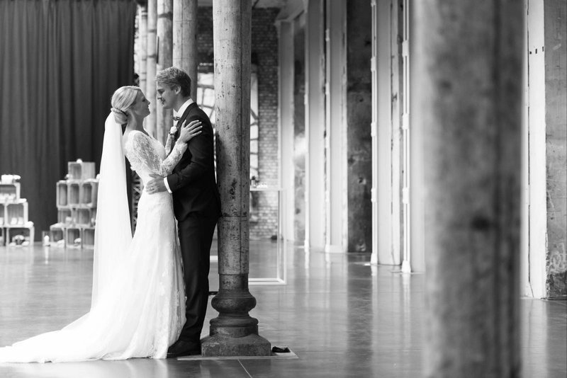 “In de periode voor ons huwelijksfeest, werden we op heel wat trouwfeesten uitgenodigd. We gaven onze ogen goed de kost, en kwamen op de mooiste en meest romantische locaties. Maar we beseften al gauw dat we het nét iets anders dan anders wilden doen. Een locatie vinden waar niet alles helemaal perfect is. Er mag al eens een muur niet geschilderd zijn of een tegeltje losliggen. In het oude fabriekspand De Brugeoise vonden we de perfecte locatie”, vertelt Benedicte enthousiast.