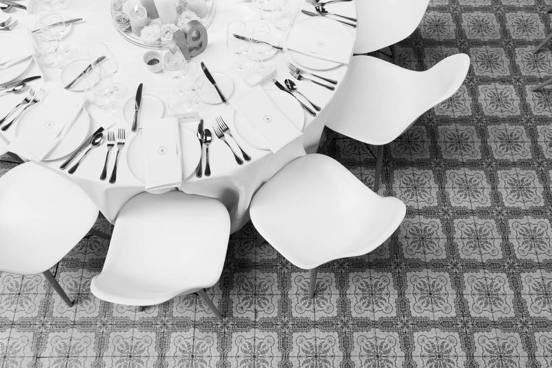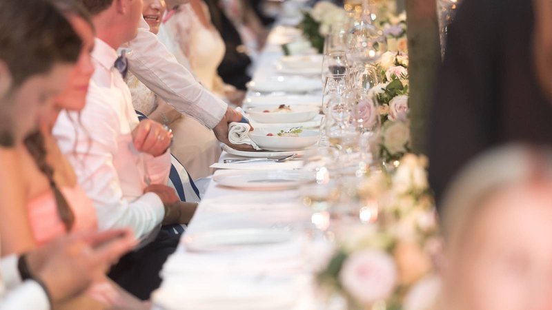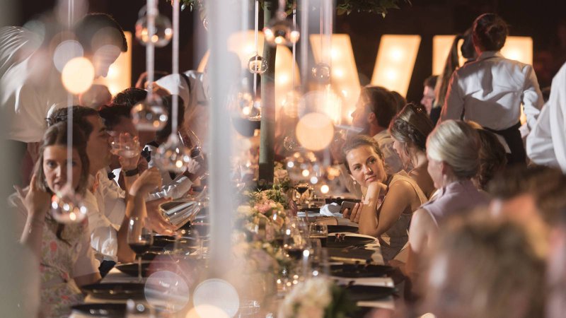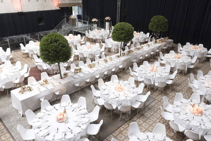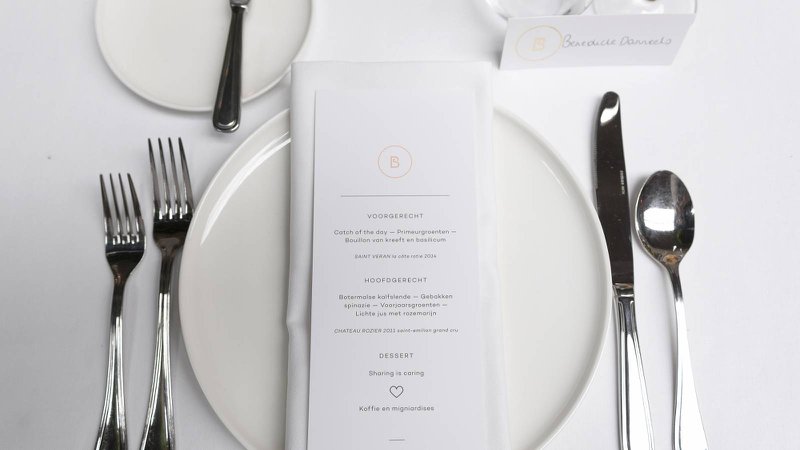 “Iedereen schoof aan ronde tafels met witte tafelkleden aan, maar met een strakke Eames-stoel om op te zitten. Ook voor het diner kozen we voor nét iets anders. Sushi en tapas als hapjes bijvoorbeeld, en goed stuk vlees als hoofdgerecht, want papa is beenhouwer!”