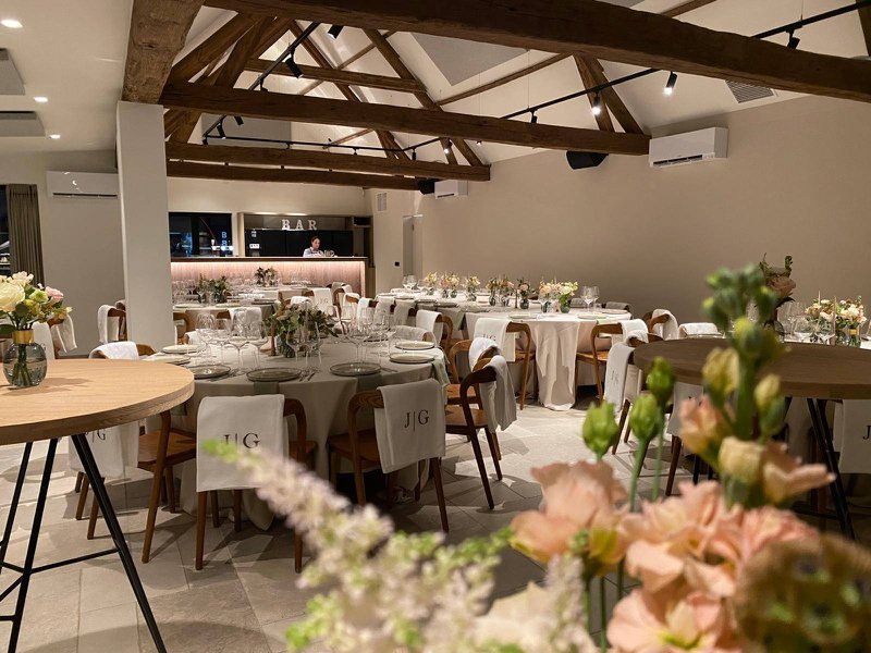 Wie droomt van een intiem huwelijksfeest vindt in Hof Ter Groeningen de perfecte setting. Zaal Paloke en De Loft stralen warmte en gezelligheid uit, ideaal voor gezelschappen tot respectievelijk 50 en 100 gasten. Authentieke materialen, veel natuurlijk licht en een directe connectie met de tuin of het rooftop terras creëren een sfeervolle en persoonlijke beleving. Zo geniet je in alle rust van een stijlvolle viering, in een locatie die charme en comfort prachtig combineert.