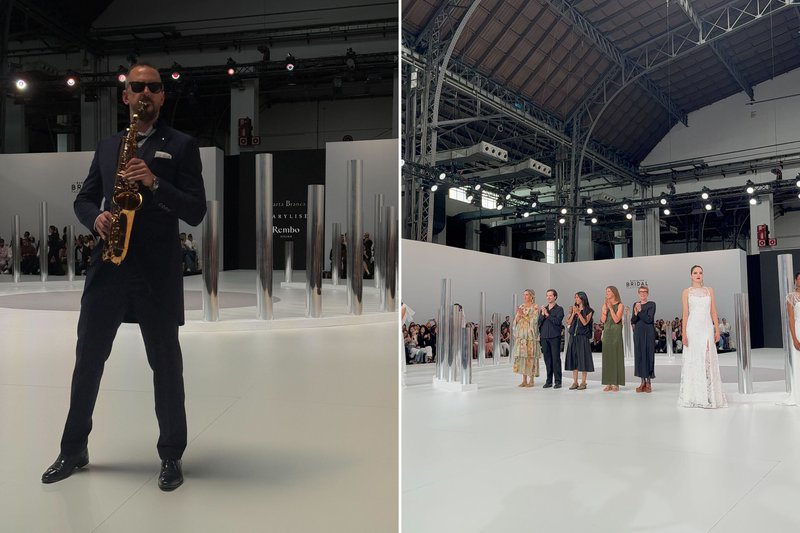 Bij het binnenkomen van de show werden we op de eerste rij opgewacht door vijf plaatsjes gereserveerd voor House of Weddings. Een live saxofonist en zilveren pilaren opgesteld in halve cirkels in het midden van de catwalk zetten hier al meteen de toon. Als eerste werd de nieuwe collectie van Carta Branca getoond. In het oog sprongen de tweedelige jurken, bestaande uit een top en rok, doorzichtige stoffen, zichtbare korsetten, pofmouwtjes en mooie rugdecolletés. Ook spotten we opvallende mouwen, zoals losse mouwen in combinatie met blote schouders, strapless en one shoulder sleeves, een sjaaltje over de hals dat los langs de rug hangt, handschoenen en sparkly accessoires.