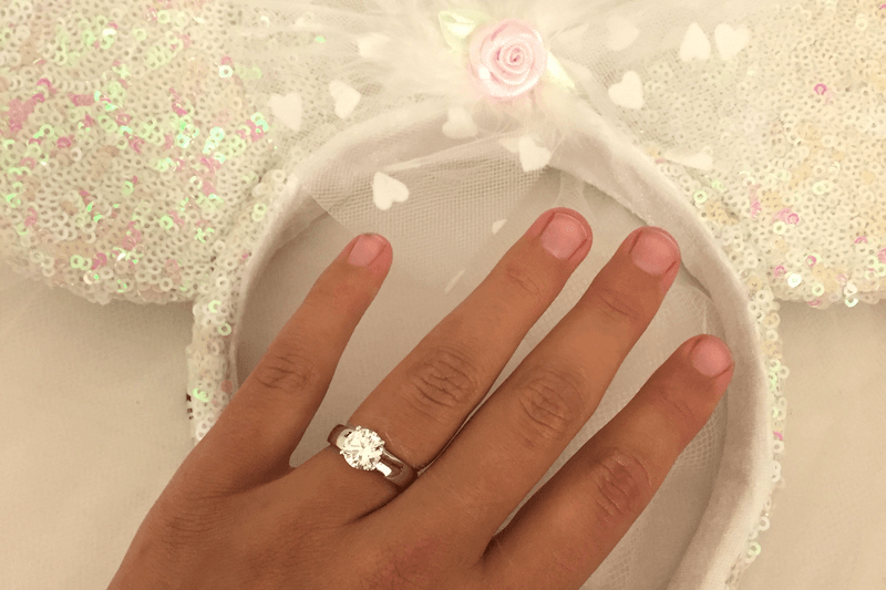 “Er was een enorme file, onderweg naar het park. Ik merkte al snel dat we er niet op tijd zouden geraken en dat ik mijn aanzoek dus niet zou kunnen doen zoals gepland... Ik moest en zou haar de 17de ten huwelijk vragen, dus besloot ik onderweg even te stoppen aan de fontein van Disney Village”, vertelt Gilles. Uiteindelijk heeft hij haar dààr dan ook ten huwelijk gevraagd. Melanie lacht: “Ik merkte wel dat hij zeer zenuwachtig was beginnen te worden onderweg, maar ik dacht dat dit kwam door het drukke verkeer. We hadden wel al vaak over trouwen gesproken, maar ik had zijn aanzoek helemaal niet op dát moment verwacht!”.