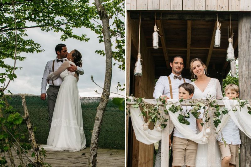 Ook hun kleding straalde die mooie ‘boho chic’ vibe uit. “Ik heb maar één winkel bezocht: Bruidsmode Els Lucienne. Ik was op slag verliefd op mijn trouwjurk. Ik had al zoveel positieve reacties gehoord over de winkel en deze bleken ook echt terecht”, geeft Melissa aan. Ook Tom vond onmiddellijk het trouwkostuum van zijn hart. “De andere mannen en ik droegen allen bretellen en zo’n traditionele, oude platte pet om onze look af te maken”, knipoogt Tom.