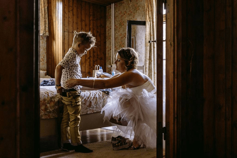 Die intieme momenten waarin jullie je voorbereiden vanaf het krieken van jullie dag verdienen ongetwijfeld een plaatsje in jullie wedding shot list. Denk hierbij aan adembenemende foto’s van jou in je trouwjurk of kostuum, voor een raam met een prachtige lichtinval. Of jouw aanstaande, die stiekem een eerste glaasje drinkt met zijn of haar beste vrienden. Ook voor het fotograferen van kleine details in jullie accessoires, jullie bloemen of bruidskindjes is dit het uitgelezen moment.