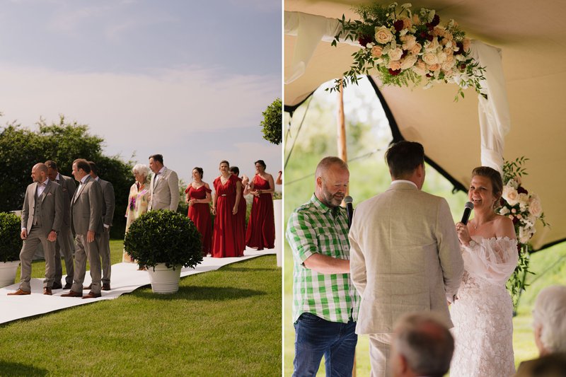 Wanneer ze beiden helemaal tiptop in orde waren, was het tijd voor Lindsay en Dries’ first look! Tijdens dit moment zagen ze elkaar voor het eerst in hun volledige trouwoutfit, omringd door hun dichtste vrienden en familie.
