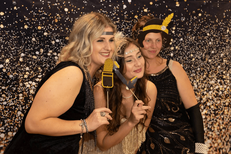 Geen fan van ballonnen? Er zijn ook heel wat andere backdrops die jullie kunnen kiezen als accessoires voor je photobooth. Denk aan glittergordijnen, fairy lights, hartjes of planten. Stem de backdrop af op jullie thema om het plaatje volledig áf te maken!