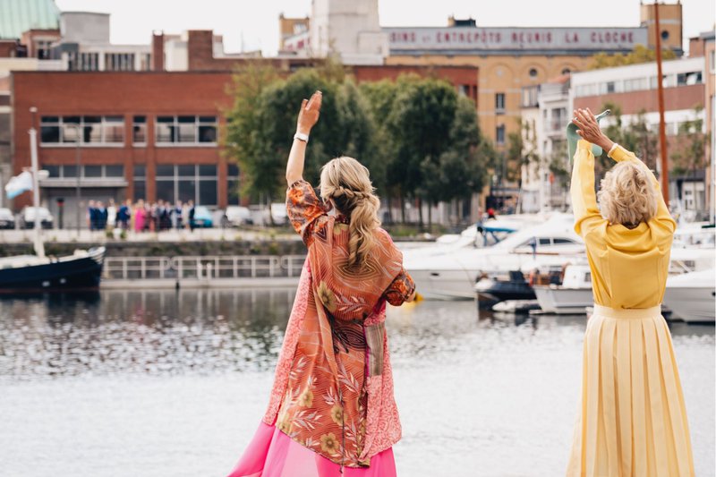 Zowel de ceremonie als het feest zelf vonden plaats in Kunst aan de Stroom in Antwerpen. De combinatie van een prachtig zicht op de stad, een locatie aan het water en een feest in de kunstgalerij zelf hadden Sylvie en Lawrence meteen voor deze magische plek doen kiezen. Bovendien woonden zowel het koppel als veel van hun genodigden in Antwerpen en zo was iedereen snel thuis na een stevig nachtje feesten. J&M Catering verzorgde een overheerlijke walking dinner, wat vóór het dansfeest al zorgde voor een toffe sfeer bij alle gasten.