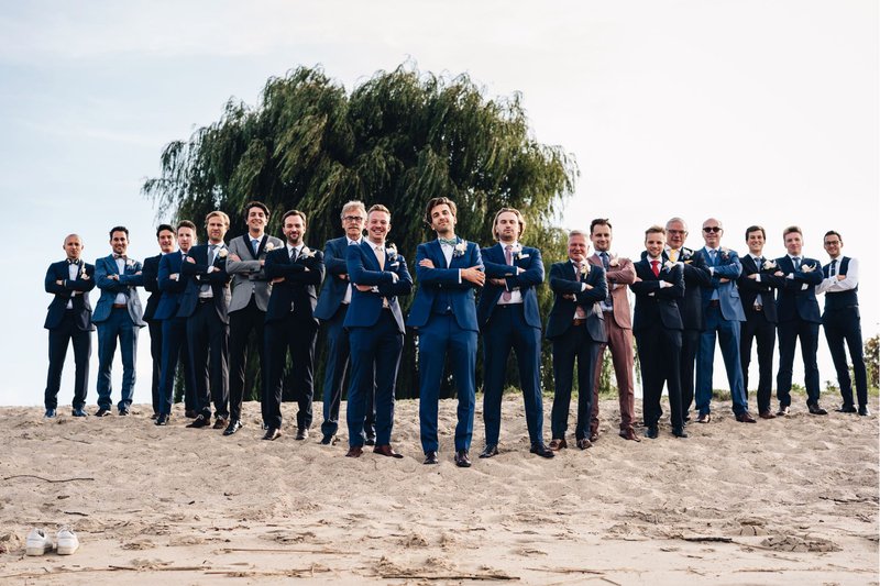 De bruidegom trok met zijn beste vrienden naar Café Costume en liet er een pak maken volgens zijn persoonlijkheid en stijl, vol verrassende details en laatste snufjes.
