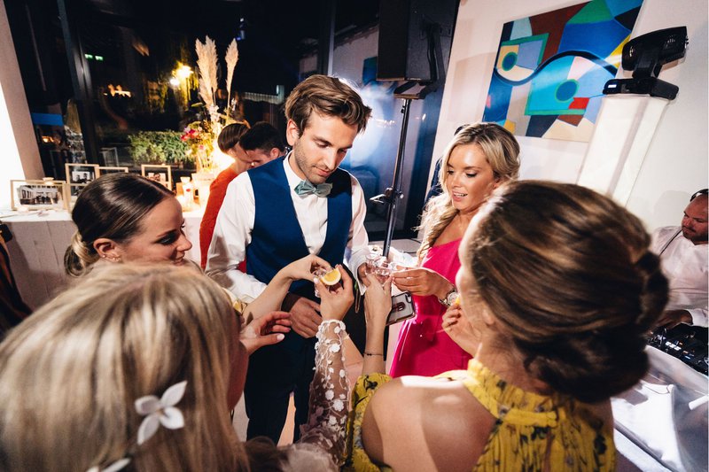 Het hoeft geen verder betoog, samen met hun vrienden en familie hebben Sylvie en Lawrence tot in de vroege uurtjes feest gevierd. Na de openingsdans gingen ze rond met shotjes tequilla, een last-minute beslissing van Sylvie de avond voordien.