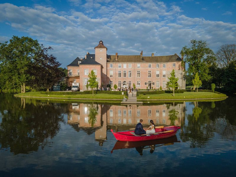 Als eerste in deze lijst van trouwlocaties aan het water, vind je al meteen een topper. Weinig plaatsen spreken zo tot de verbeelding als Chalet Robinson, een mythisch gebouw midden een eiland in de vijver van het Brusselse Ter Kamerenbos. Het is de perfecte combinatie van geschiedenis, karakter en natuur. Dichtbij Brussel, maar ver weg van alle drukte. Vaar met een rustiek pendelbootje naar jouw eigen exclusieve eiland en waan je een prinsenpaar in je eigen sprookje!