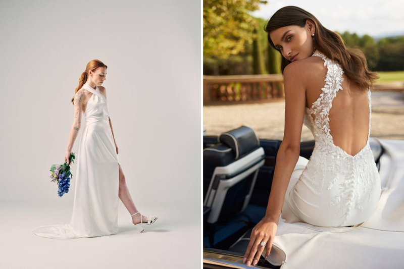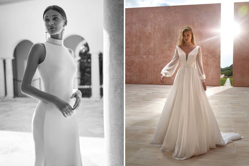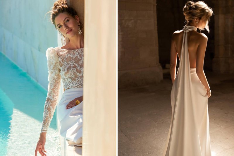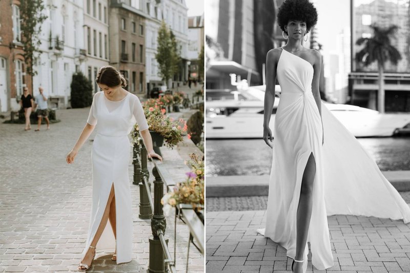 Foto (links): Trouwjurk: Sikkema - Fotograaf: Elke Van den Ende / Foto (rechts): Trouwjurk: JPC Collection