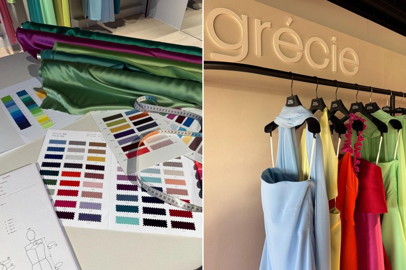 Bij Grécie draait alles rond occasion wear: “In onze winkel beschikken we over exclusieve merken die vaak nog niet in Europa te verkrijgen zijn. Daarnaast bieden we ook onze eigen collecties aan. Van de mama van de bruid tot de bruidsmeisjes, er is echt voor iedereen wat wils. Ook de bruid kan bij ons haar civil wedding dress uitkiezen of zelf samenstellen. Wat ons echt uniek maakt, is ons maatwerk. We maken alles zelf in ons atelier in België”, vertelt Emma.