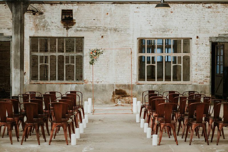 Dat een karaktervol pand een uitstekende eigentijdse trouwlocatie kan zijn, bewijst deze styled wedding shoot in De Cultuurfabriek in Ronse. Vroeger was dit een garenververij, nu is het een plaats waar cultuur en creativiteit volop samenkomen. Het oorspronkelijke gebouw is bewaard en gerestaureerd met respect voor het architecturaal verleden. Dat historische aspect sprak Eline enorm aan.