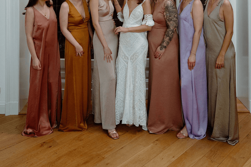 Voor de suitekledij van de mama’s ónderling geldt hetzelfde. Is er een bepaald kleurenschema dat de trouwers aan de gasten doorgaven, ‘ter inspiratie’? Het kan zeker leuk zijn om te bekijken welke kleuren bij de ene en bij de andere mama passen, zodat elke mama haar eigen look heeft en toch past bij het geheel. Als de mama’s voor dezelfde kleur willen gaan, kunnen ze zich onderscheiden met accessoires. Denk aan een leuk jasje, een kleurrijke handtas of opvallende juwelen. “Mijn mama en schoonmama wilden graag op elkaar afgestemd zijn en goed bij elkaar passen. Ze wilden voorkomen dat de één de ander zou overschaduwen. Deze tip kregen we mee van Els”, vertelt Scarlett. Dit is natuurlijk geen verplichting. Als er geen specifieke voorkeuren zijn, hoeft de suitekledij van de mama’s helemaal niet op elkaar afgestemd te zijn.