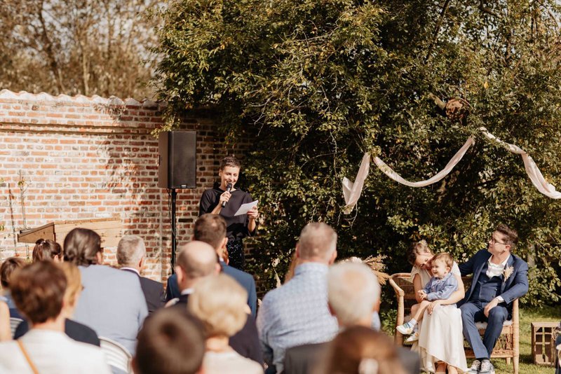Wil je trouwen met kinderen extra symbolisch maken? Voorzie dan een gezamenlijk moment tijdens de ceremonie. Dat kan een zandceremonie zijn waarbij jullie alle kleuren samenvoegen, een ballonmoment of een gezamenlijke familiefoto na de geloften. Zulke rituelen benadrukken dat jullie niet alleen als koppel, maar ook als gezin een nieuw hoofdstuk starten.