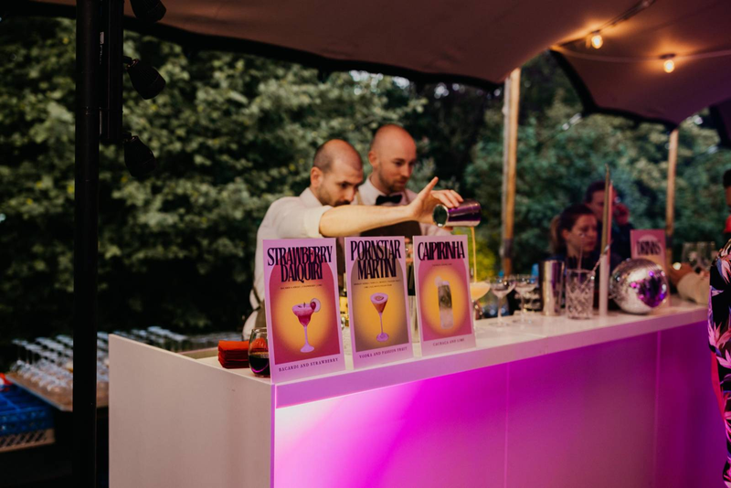 Wil je je gasten écht verrassen? Voorzie dan een stijlvolle cocktailbar met een persoonlijke signature drink. Laat een mixologist jullie lievelingscocktail heruitvinden of creëer een zomerse mocktail in jullie themakleuren. Een vrolijke mobiele bar maakt jullie zomerhuwelijk helemaal af.