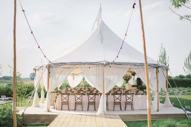 Een huwelijk in festivalsfeer, dat moét gewoon buiten. Een groene weide of een grote parktuin zijn zonder twijfel toplocaties. Omdat België, zelfs in de zomermaanden, geen mooi-weer-zekerheid biedt, doe je er goed aan om ook een grote tent te voorzien. Of zoek een locatie met een schuur, zodat je het – ook bij regenweer - te allen tijde drooghoudt.