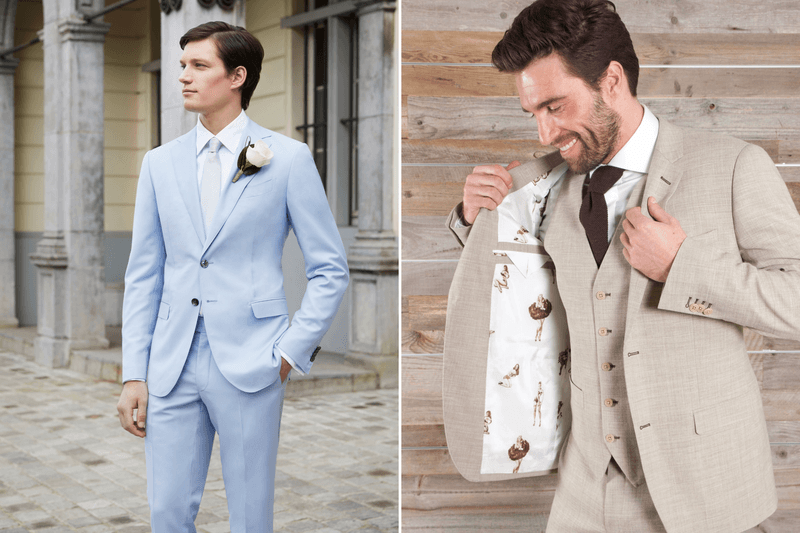 In de zomer komen vooral lichte kleuren terug in de trouwkostuums. Dit in een combinatie van vest en broek. Volgens Café Costume gaat dit voornamelijk van lichtblauw tot muntgroen, maar ze zien ook meer uitgesproken gewaagde kleuren.