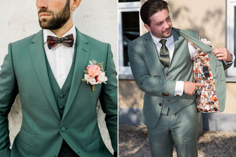 Een groen trouwkostuum wordt steeds populairder. Ook speciaalzaak Labaere vindt dit terug in hun collectie, geeft Olivier Labaere aan: “Groen is vandaag een kleur die we bijna evenveel verkopen als blauw.” Van donkergroen tot olijfgroen of zelfs muntgroen, alle nuances zijn mogelijk. Tom De Bleeckere van Atelier Smalville vult dit nog verder aan: “Die speciale kleuren waar vroeger niemand naar vroeg, zijn nu helemaal in!” Ook Bruno Van Gils, van Café Costume, besluit: “Green is the new black.”