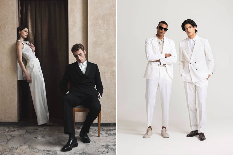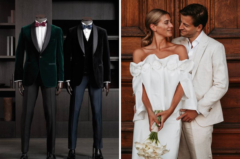 Fluweel maakt een sterke comeback, vooral voor winterhuwelijken. Het geeft je outfit een rijke, elegante uitstraling en voelt heerlijk zacht aan. Voor zomerbruiloften zijn lichte, ademende stoffen zoals linnen of een mix van linnen en wol dan weer populair. Dat merken ze bij Grusenmeyer ook op, Batiste vertelt: “Wij verkopen veel wol-linnen pakken die iets meer casual zijn van stijl in vergelijking met het traditionele pak of een black tie wedding.” Ze zorgen voor een ontspannen look die tegelijk stijlvol blijft.