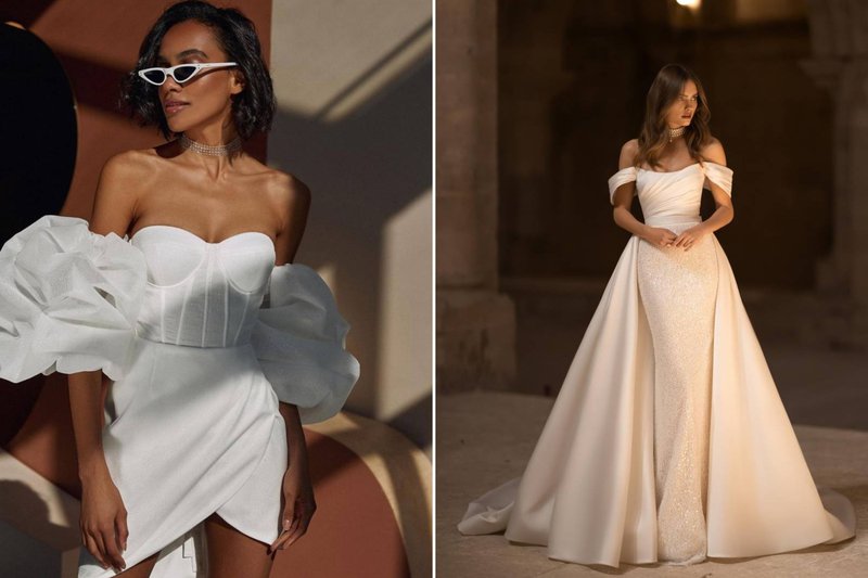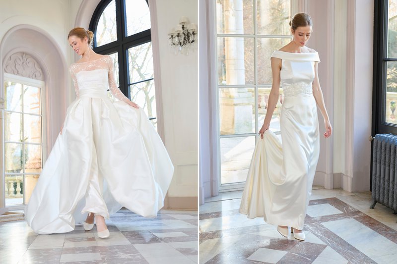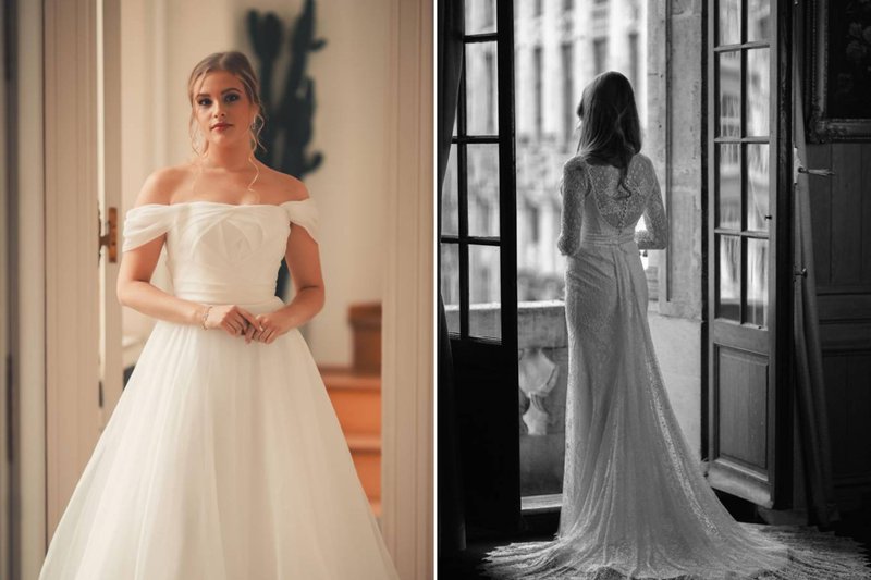 Foto (boven): Bruidsmodewinkel: Louise Mariage / Bruidsmodewinkel: Mari Fin Bridal - Merk: Eva Lendel / Trouwjurk: Atelier Poublon