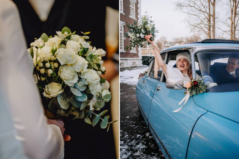 Foto’s (boven, v.l.n.r.): Bloemen: Floralis Handmade - Fotograaf: Valerie Plessers / Bloemen: Florist - Fotograaf: Valeriya Maltsava / Bloemen: Coco Bloom Concept - Fotograaf: Aiki Photography
