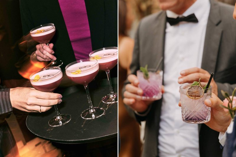 Sharing is caring: grote schalen met verfijnde gerechten om te delen aan tafel blijven trendy, evenals uitgebreide desserttafels en midnight snacks op de dansvloer, zoals croques, frietjes of mini-burgers. Ook gepersonaliseerde cocktails of mocktails zijn in 2026 helemaal hót! Ze geven je drankjes een originele twist, vaak geserveerd aan een stijlvolle (mobiele) bar.