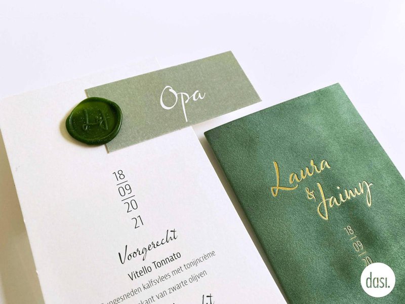 Foto: Wedding planner: C Events - Fotograaf: LUX Visual Storytellers Ook creëren steeds meer bruidsparen een visuele huisstijl voor hun huwelijk of ‘branded wedding’, met een eigen logo of monogram, kleurenthema en typografie. Dit vormt een elegante rode draad doorheen de uitnodigingen, menukaarten, tafelnummers en zelfs gepersonaliseerde backdrop of dansvloer.