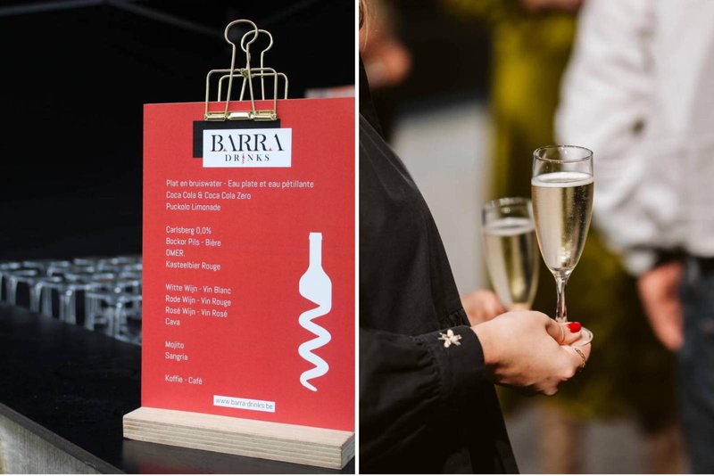 Foto (boven, v.l.n.r.): Cocktails & Mobiele Bar: Marsjandies - Fotograaf: Degelin Media / Catering: KTCHN / Catering: J&M Catering