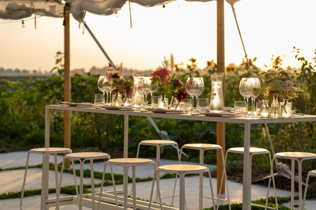 Pascal vertelt verder over Femat’s flexibele service: “Je decoratieverhuur kan best een groeiend proces zijn; vaak kan je nog niet meteen alles beslissen. Onze offerte kan je daarom gaandeweg nog aanpassen - soms heb je nog parasols of verwarming nodig, of wil je een andere kleur van servetten. Met onze ruime voorraad is dit geen probleem. Tot twee dagen voor we je bestelling leveren, kan je die nog verfijnen. Vaak weet je vooraf namelijk ook nog niet hoeveel mensen er exact komen. Zo betaal je een correcte prijs. We leveren alles vlot af met onze eigen transportvloot - in pakketvorm, en zo halen we het ook terug op. Daarnaast kan je indien nodig zelf last-minute zaken bij ons komen afhalen, zoals servetten, accessoires of paraplu’s. Na ophaling nemen we natuurlijk de afwas van het linnen en servies op ons.”