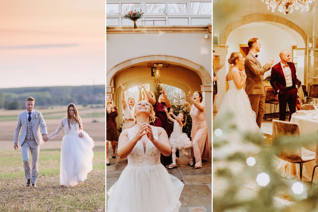 Foto (boven): Videograaf (links): Bruidbeeld - Videograaf (midden en rechts): Fris Wedding Films
