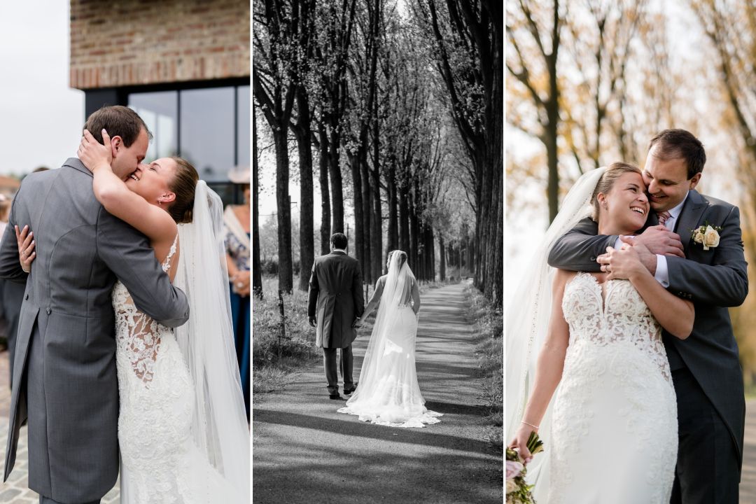 Na de prachtige plechtigheid trokken Laura en Karl met hun gasten naar de feestlocatie: Huyze De Baere in Maldegem. Laura vertelt: “De zaal is écht uniek: warm, verfijnd, en tegelijk groot genoeg voor al onze gasten. De prachtige binnentuin bleek perfect voor onze receptie. We waren mooi ingesloten, dus het waaide er niet en de zon kon zo mooi zijn werk doen. Met het mooie uitzicht op het erachter gelegen groene landschap was de sfeer direct top!”