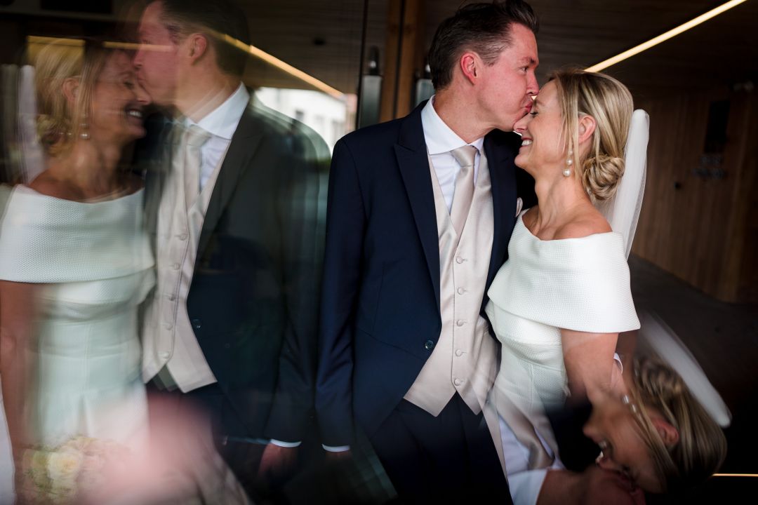 Na de viering werden de gasten bij het buitengaan van de kerk opgewacht door De Bubbelbar, een mobiele champagnebar die voor een feestelijke start van de namiddag zorgde. Isabel en Johan huurden de bar voor een uurtje; voor een originele, stijlvolle én praktische receptie vlak na het kerkelijk huwelijk.
