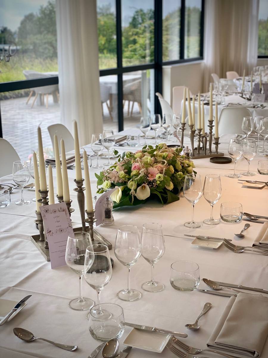 Combinatie Zaal Morgenrood & Vallei: Door Zaal Morgenrood en Zaal Vallei te combineren, geniet je van een grotere capaciteit voor je evenement. Deze combinatie biedt ruimte voor 160 personen zittend en tot 200 personen voor recepties of walking dinners. Dit biedt veel flexibiliteit voor grote bruiloften, jubilea of bedrijfsevents, waarbij je gasten kunnen genieten van het prachtige uitzicht op de tuin en de vallei.