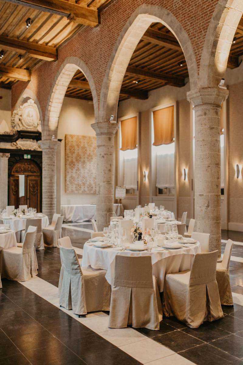 Deze romantische balzaal van 440 vierkante meter biedt hét unieke decor voor huwelijksdiners, feesten en ceremonies.