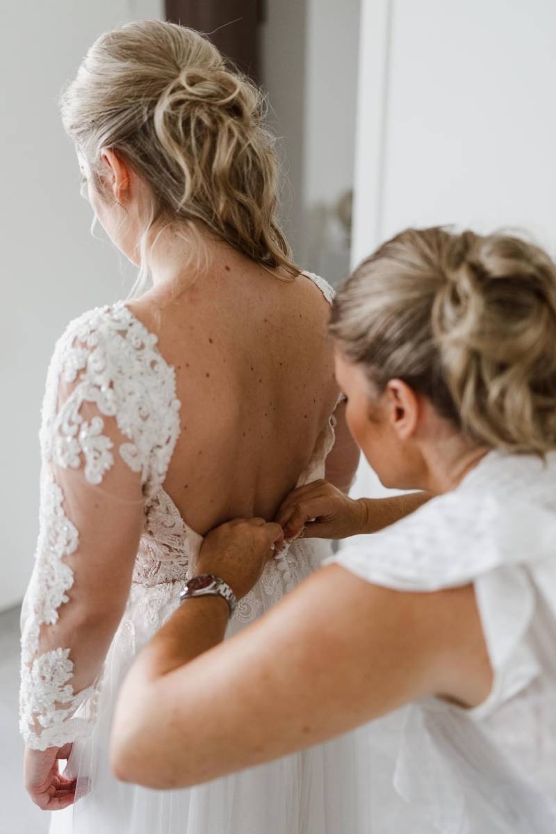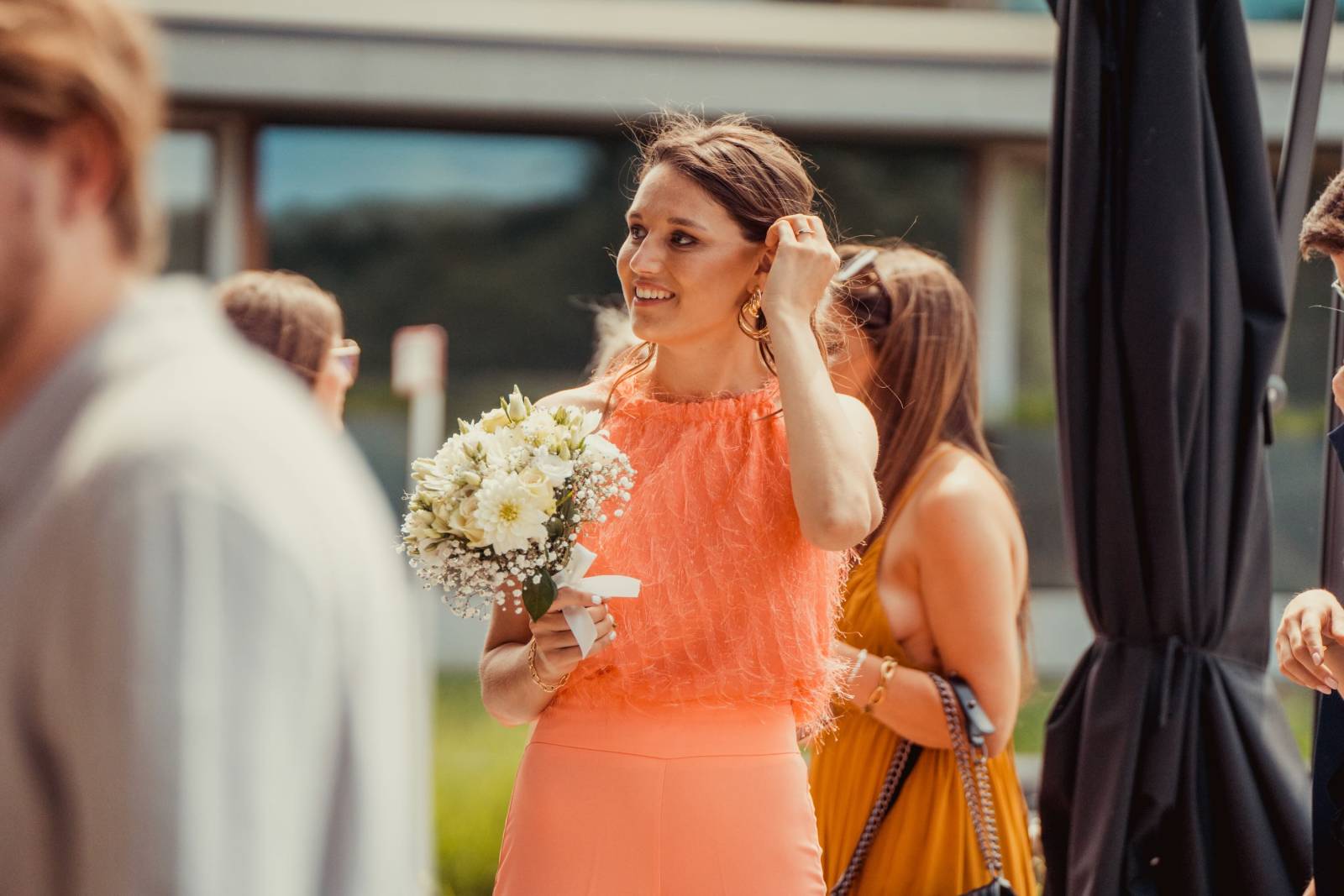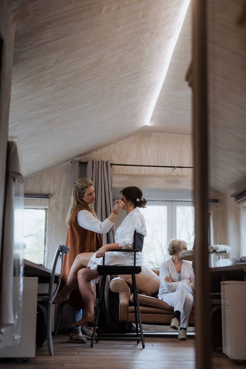 Naast het verzorgen van de make-up, is ze er ook om je gerust te stellen en een ontspannen sfeer te creëren op jullie grote dag. Ook de andere dames uit de suite kunnen mee opgemaakt worden, zo wordt het een leuke en gezellige start van de dag, omringd door jouw dierbaren!