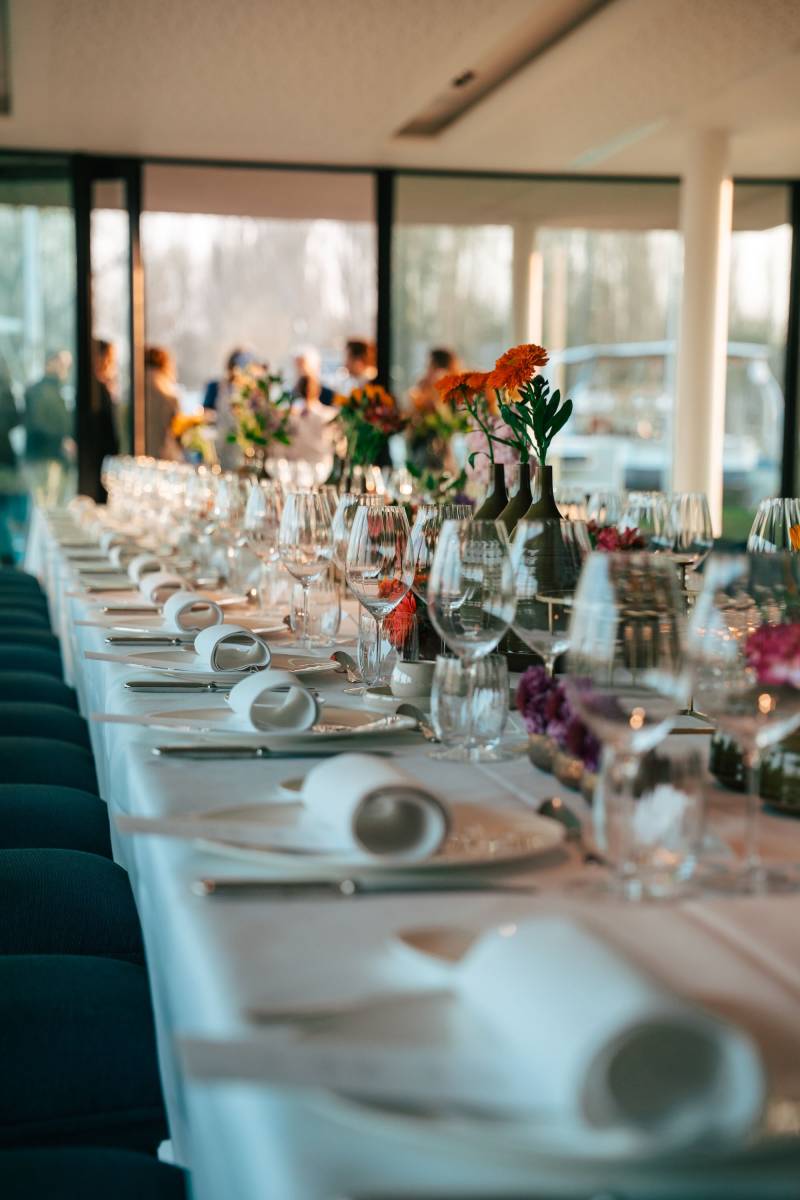 Of jullie nu kiezen voor een intiem diner, een openluchtceremonie of een zomers avondfeest onder de tent: elke setting draagt bij aan een warme, persoonlijke beleving. De opstellingen worden volledig afgestemd op jullie visie, in samenwerking met jullie wedding planner of stylist.