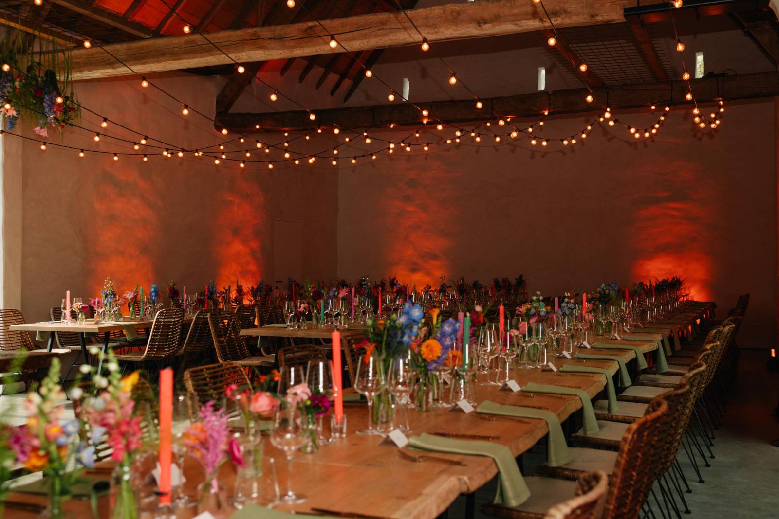 Dankzij een eigen magazijn met professioneel materiaal focust Duliso op wat écht telt: een persoonlijke aanpak en een eindresultaat op maat van de locatie en jullie budget. Ze gaan maar al te graag in dialoog met jullie weddingplanner en bloemist, om de inkleding, het licht en geluid perfect op elkaar af te stemmen.