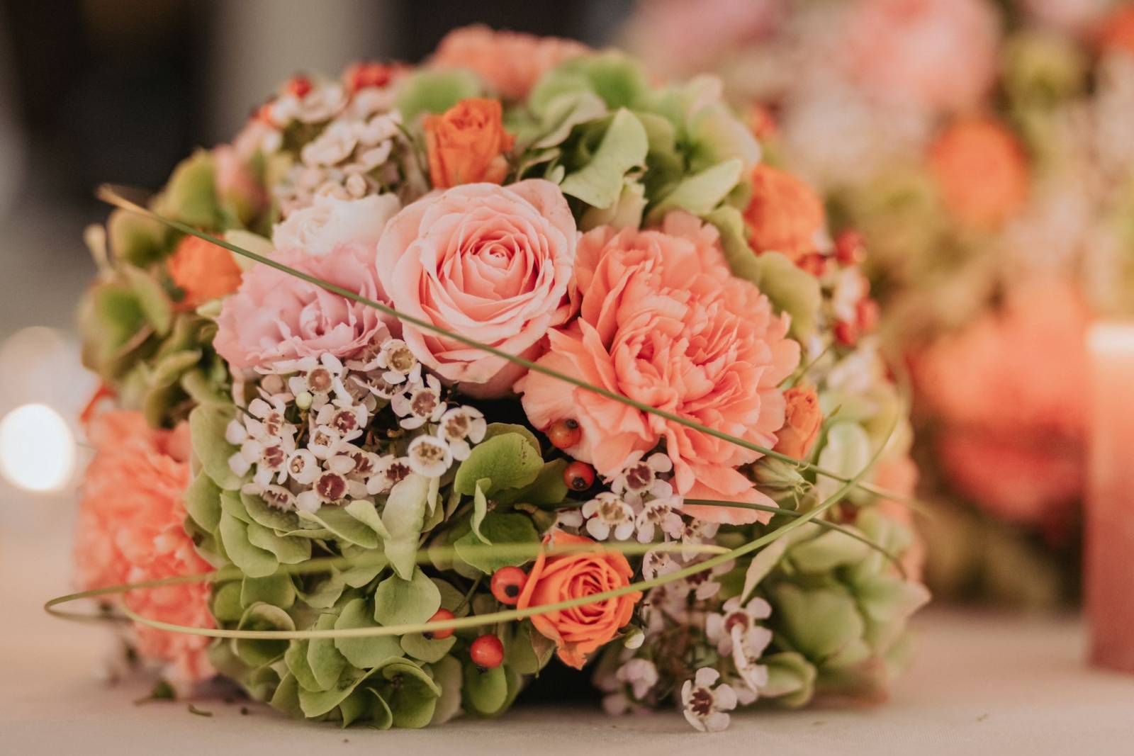 Met kennis en liefde zorgt El Florido voor het perfecte bruidsboeket met bijpassende boutonnière voor de bruidegom.