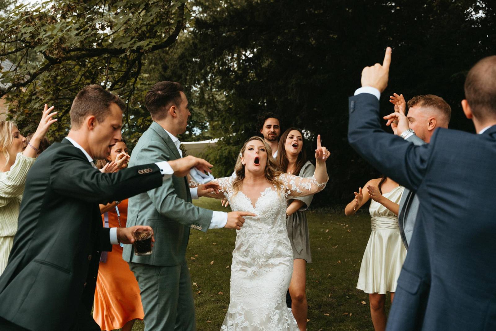 FEEST. staat nooit stil. Als één van de eerste leveranciers bieden ze, naast DJ-services, ook in trouwfeesten gespecialiseerde content creators aan. Dit is een absolute meerwaarde zodra de fotograaf vertrekt. Want wie filmt jullie wanneer jullie diep in het dansfeest op de schouders van vrienden belanden? Wie legt het epische einde vast? Wie filmt die te gekke break-dance van… Juist, dan is iedereen écht aan het genieten – zonder telefoon. De content creator van FEEST. loopt dan rond met haviksogen en een topkwaliteit smartphone in de aanslag om alle spontane momenten vast te leggen. Er zijn twee opties beschikbaar: enkel de dansfeest-editie of een all-day formule. Daarnaast werken ze ook graag een TikTok- of Reels-trend op maat uit, of een epische recap van het dansfeest. Jullie genieten, FEEST. legt de spontaniteit vast.