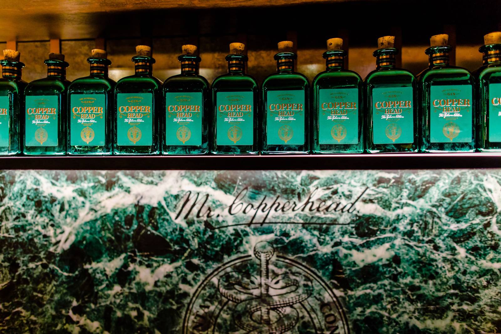 Meneer Copperhead was een bekende alchemist, op zoek naar het perfecte levenselixer. Tijdens zijn avontuurlijke zoektocht keerde hij terug naar de oorsprong van gin en creëerde een London Dry gin die wordt gestookt in authentieke koperen distilleerketels. Het resultaat is een zachte gin met een frisse toets van citrus, een perfect gebalanceerd recept met 5 ingrediënten: engelwortel, jeneverbes, kardemom, sinaasappelschil en korianderzaad. Naast de klassieke Copperhead zijn er ondertussen nog 3 varianten, waarbij ook een non-alcoholische Copperhead, die tal van combinaties mogelijk maken. Geniet van de alchemist's gin!