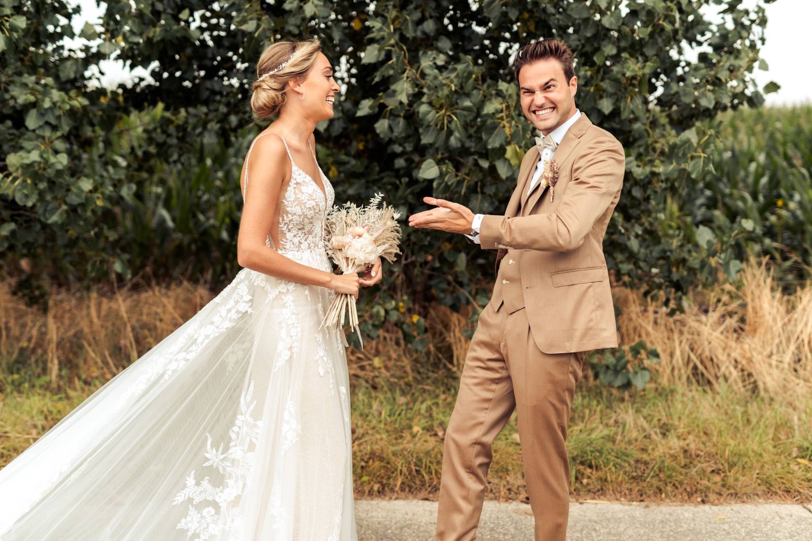 Bij Grusenmeyer denken ze graag met je mee en helpen ze jou om het trouwkostuum van je dromen te creëren.