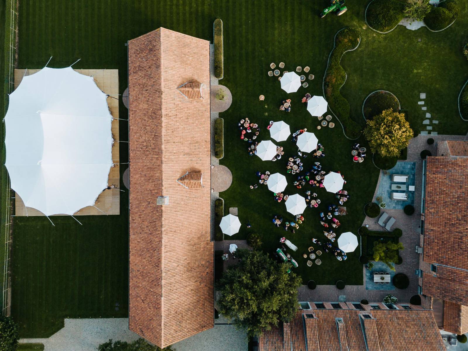 De gerestaureerde schuur van Hoeve Crisantemi biedt plaats aan 100 gasten en is perfect voor een intiem diner. Voor grotere gezelschappen kan de schuur eenvoudig worden uitgebreid met verschillende soorten tenten in de uitgestrekte tuin, zodat je tot wel 500 personen kunt ontvangen. Elke ruimte kan volledig naar thema en voorkeur worden aangekleed, waardoor elk feest een eigen sfeer krijgt.