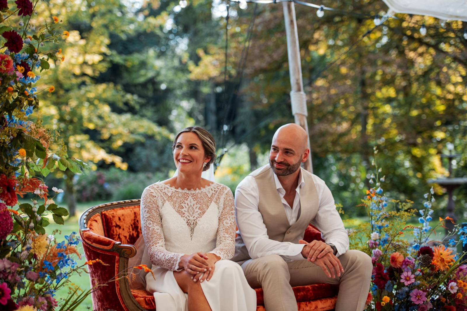 Hof van Beatrijs heeft vier zalen ter beschikking om van jullie trouwfeest een onvergetelijke ervaring te maken. Bij mooi weer kan jullie diner, jullie ceromonie of zelfs jullie dansfeest doorgaan onder een tipi-tent, sfeervol ingericht met slingerlichtjes. Ook jullie receptie kan je laten doorgaan in de schaduw van de bomen aan de vijver. Een feeërieke feestbelevenis te midden van de natuur.