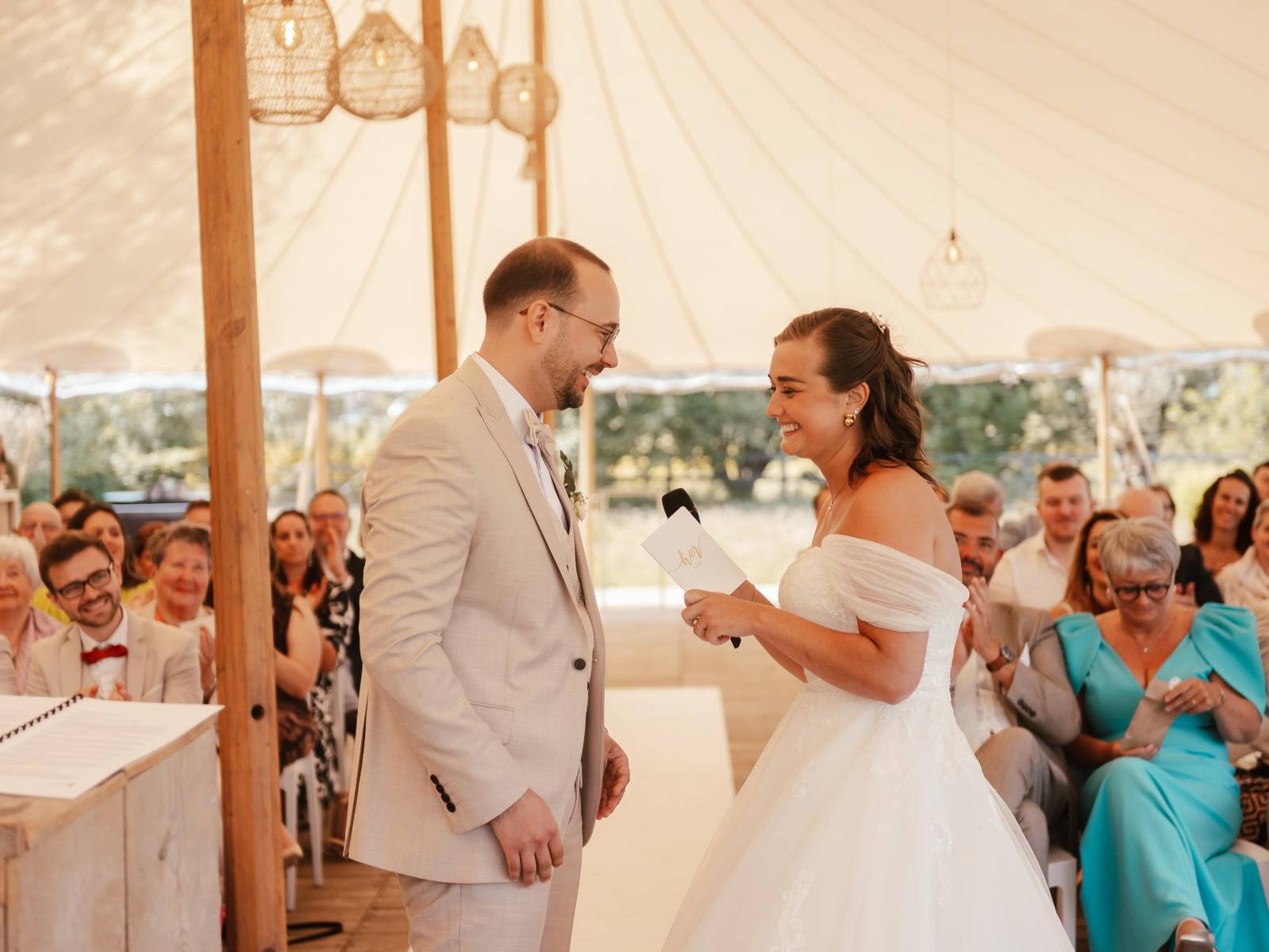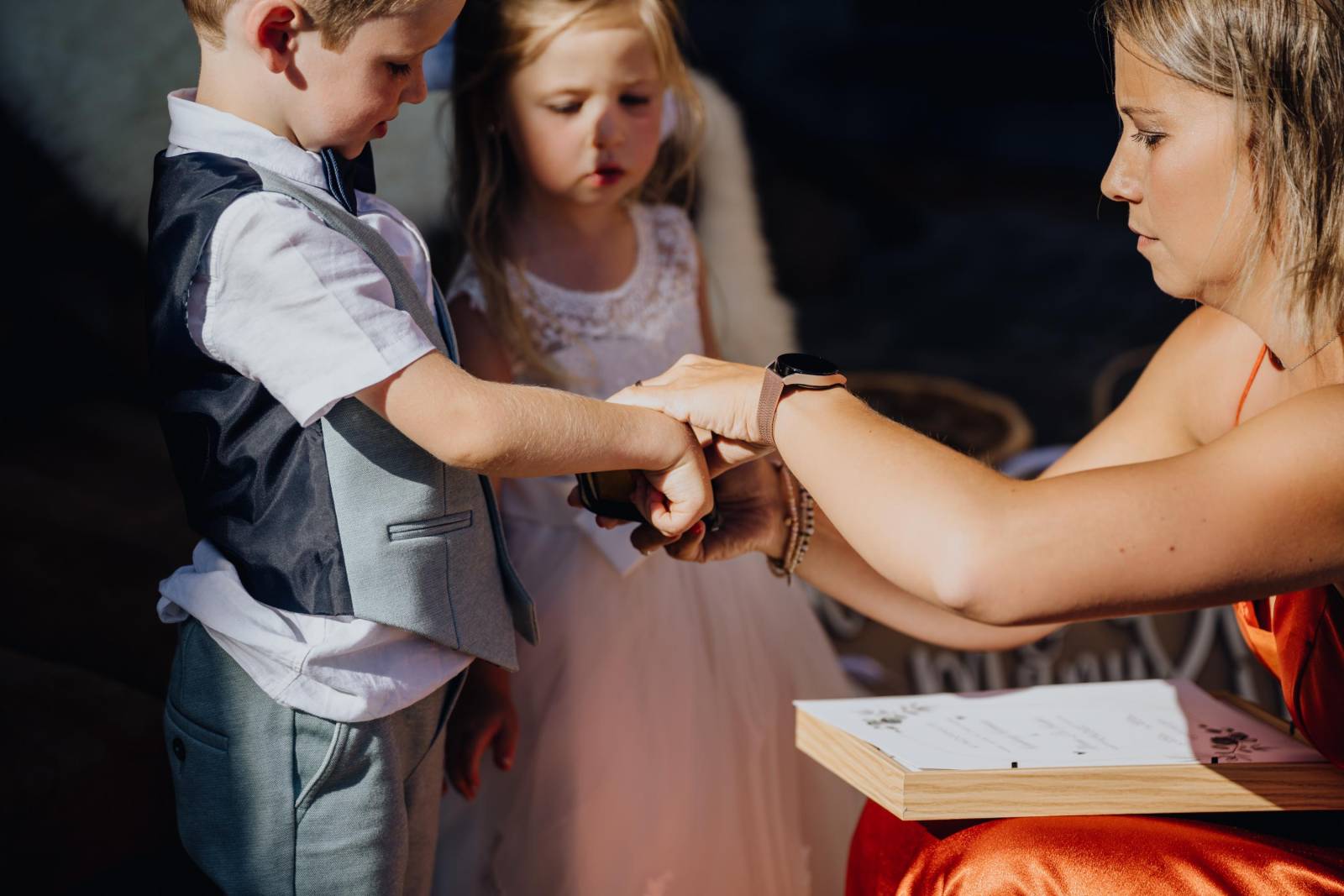 Bij La Promessa draait het niet om stijve formaliteiten of een strakke planning vol toeters en bellen (tenzij jullie dat willen, natuurlijk ;) ). Wat wél telt, is echtheid. Een losse, lichte sfeer waarin er ruimte is voor spontaniteit, voor kinderen die tussendoor een dansje doen, voor een slappe lach tijdens de geloften, voor een tedere blik die alles zegt.