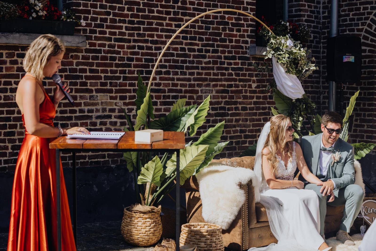 Of jullie nu dromen van een intieme ceremonie in het groen, een feest vol kleur en muziek of een mix van culturen en talen – Nathalie luistert, begeleidt, en viert mee. Altijd op jullie tempo, in jullie taal (letterlijk en figuurlijk), met jullie verhaal als rode draad.