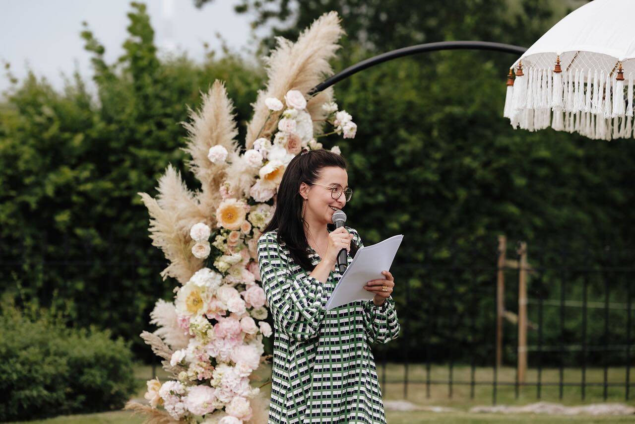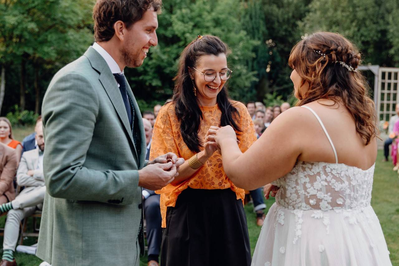 Ze kiezen jullie mooiste anekdotes, vertellen over jullie vlotte afdalingen, maar durven ook de hobbels en kuilen op jullie pad te benoemen. Ze laat jullie favoriete mensen aan het woord, moedigen een streepje (live) muziek aan, en geven jullie een zetje bij het schrijven van jullie geloften. Vervolgens rijgen ze alle delen aan elkaar tot een ceremonie die niets minder dan op jullie lijf geschreven is.