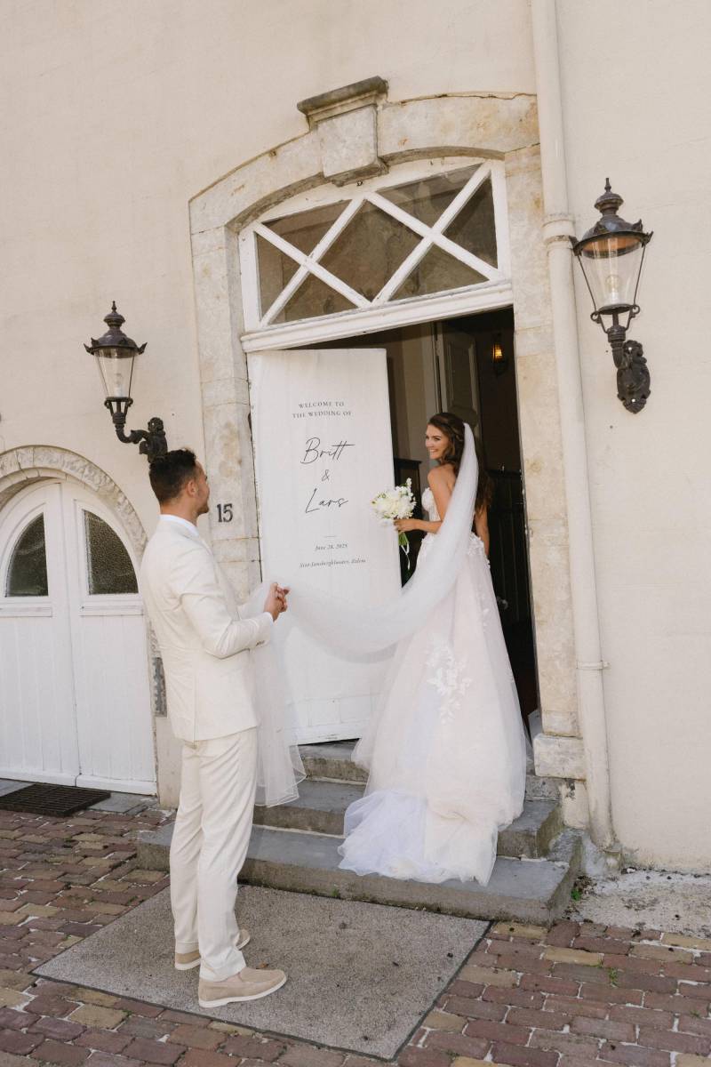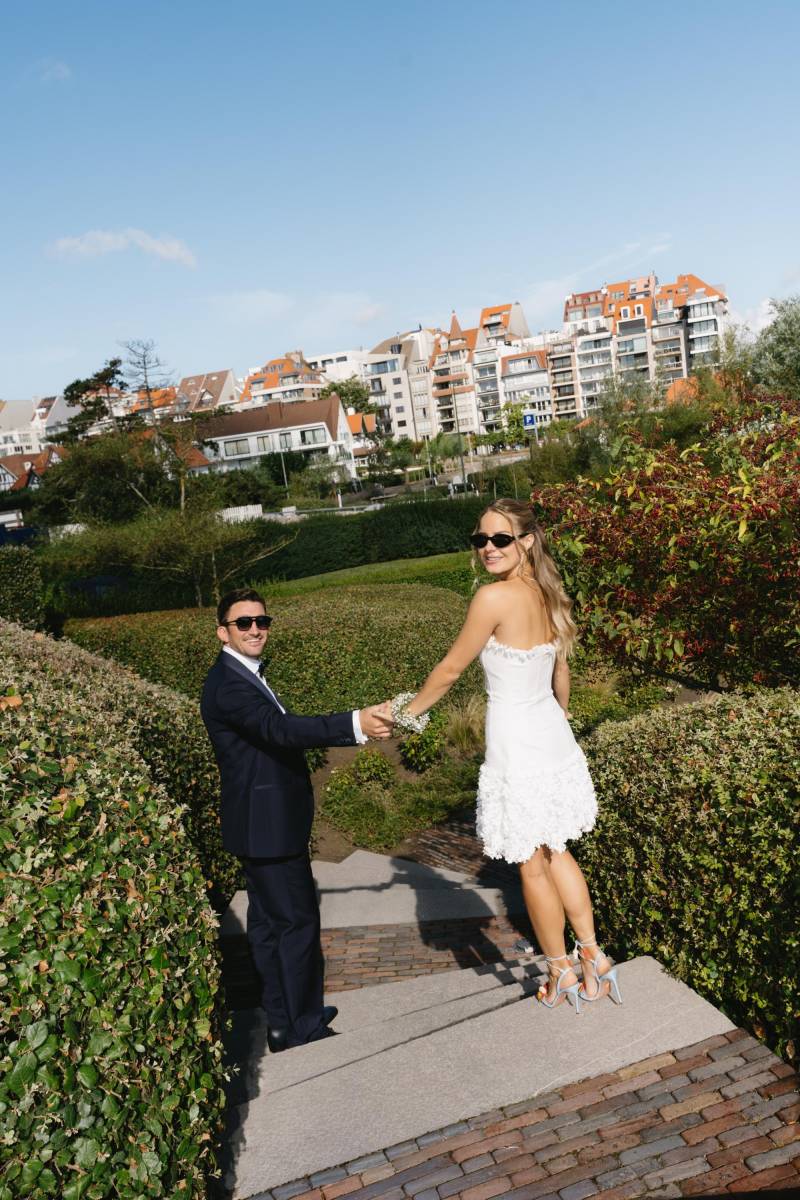 Vooraf bespreekt Lotte de wensen van het koppel in een videocall en stelt zij een moodboard samen met stijl, kleuren en poses, zodat de reportage volledig aansluit bij hun visie.